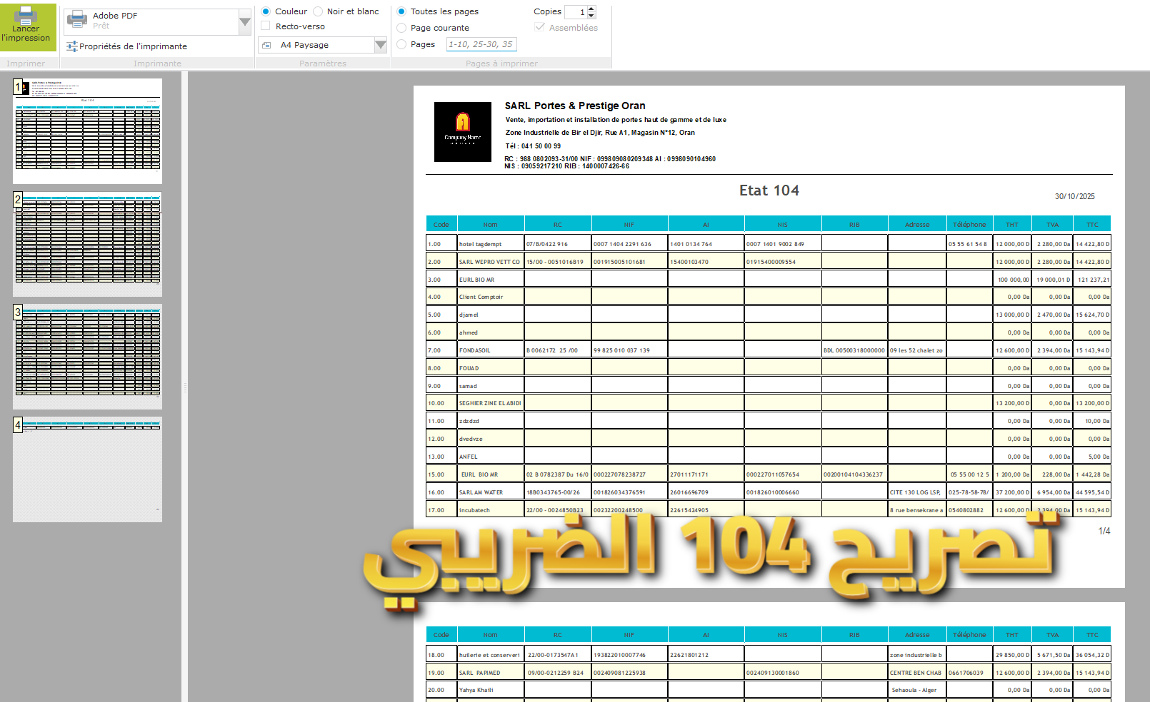 État 104 intégré – Génération automatique et conforme du relevé fiscal des ventes.