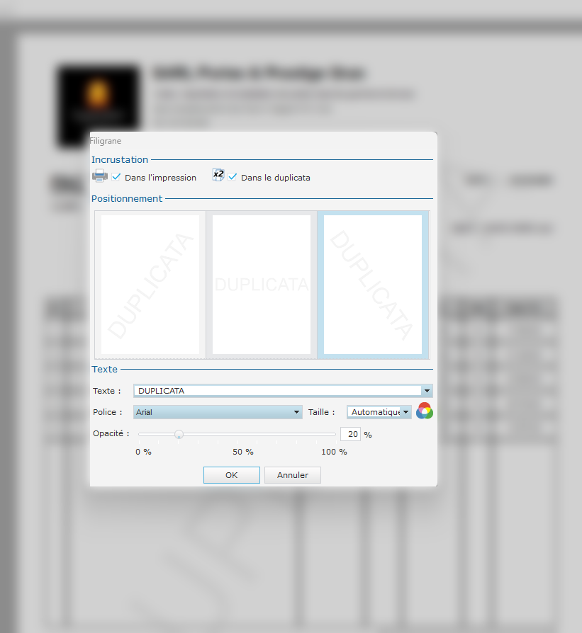 Duplicata automatique – Création d’une copie conforme avec mention “Duplicata – Copie conforme à l’original”.