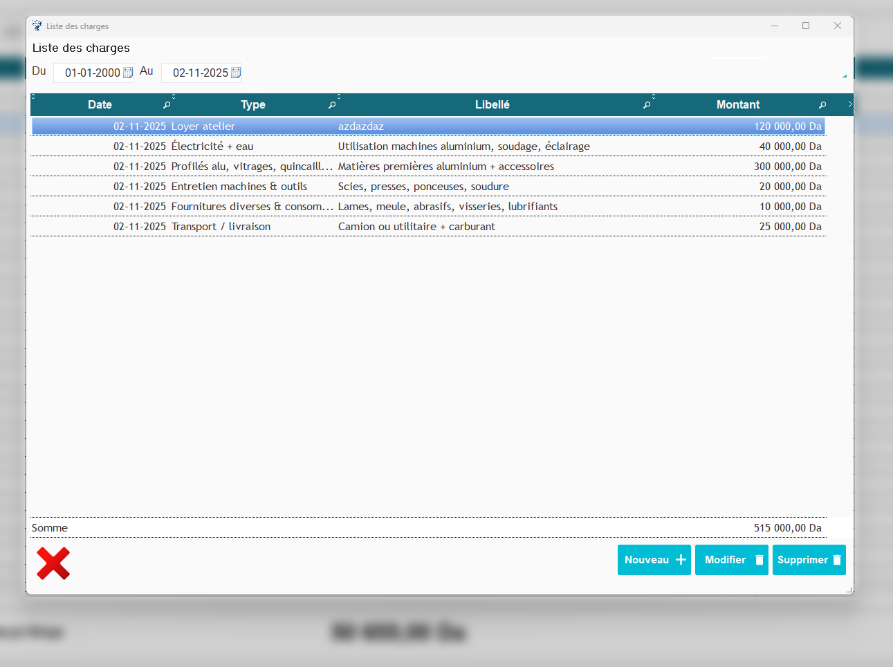 هل يمكن تسيير مصاريف الورشة؟(Charges)