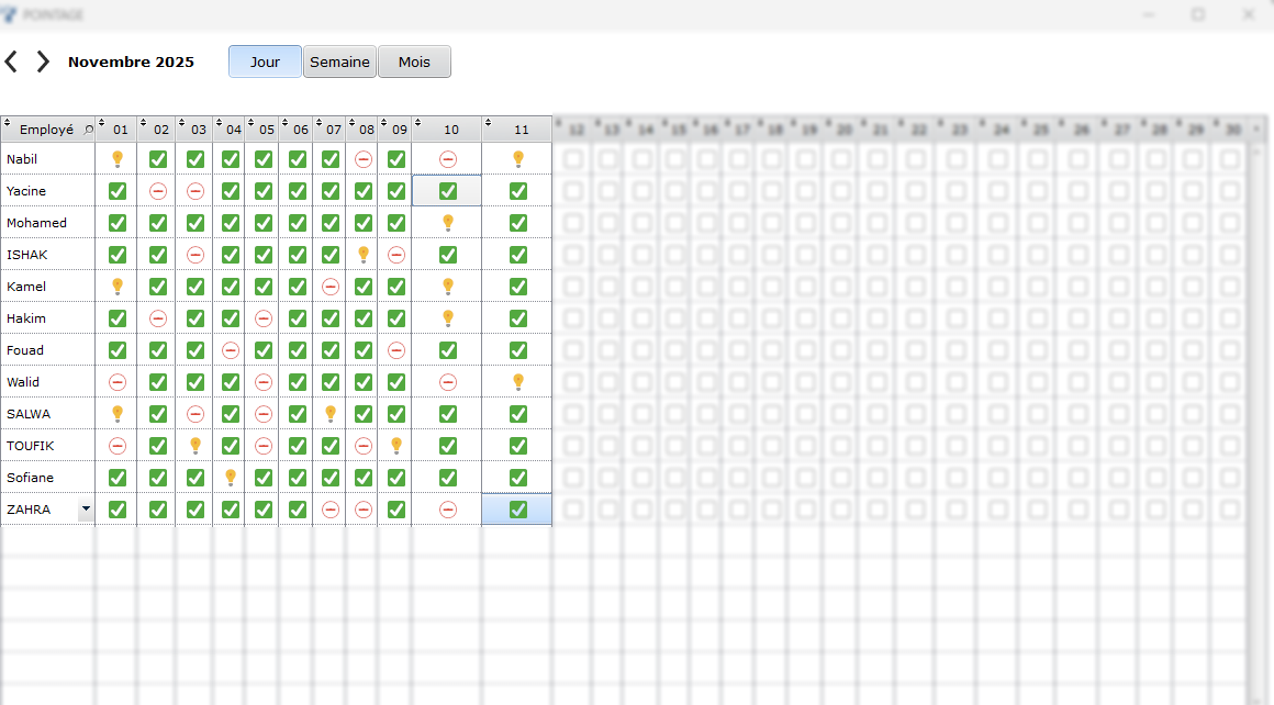 - نظام نقطة الحضور والانصراف (الدخول، الخروج، التأخيرات، الغيابات).(Pointage)
