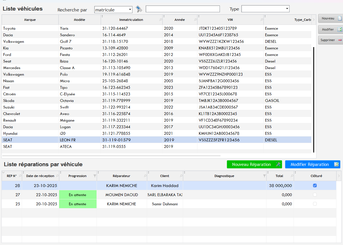 بطاقة مركبة وتاريخ الصيانة لكل زبون