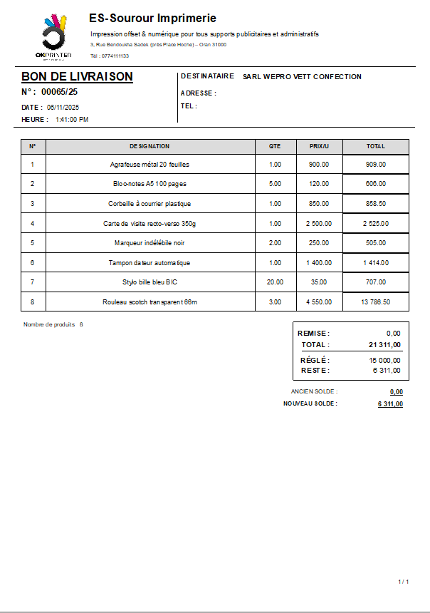 برنامج جزائري احترافي لتسيير المبيعات والطباعة والمخزون